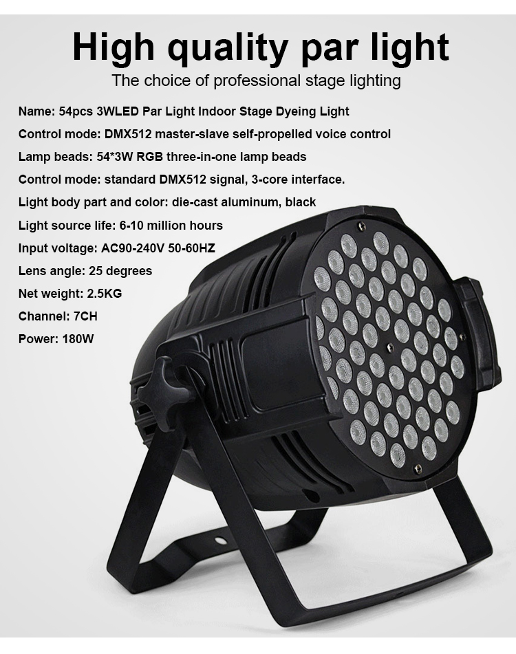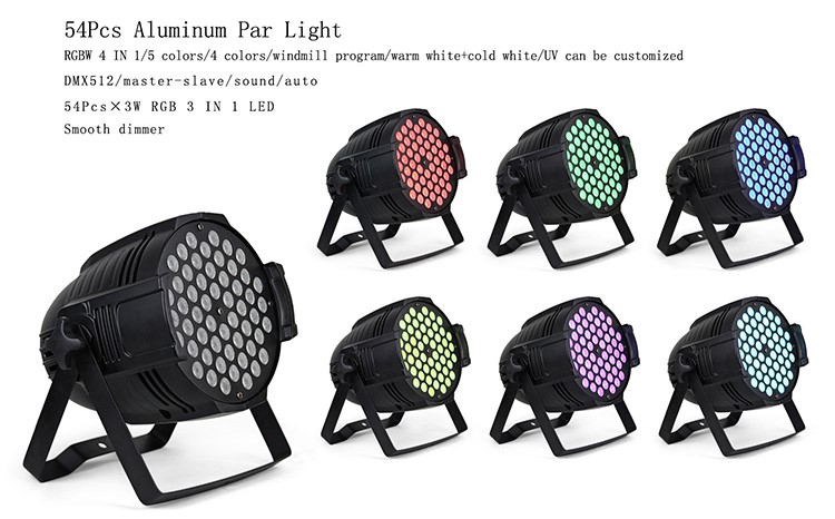 180W 54x3W LED PAR Light Indoor Stage Wash Light with RGBW Single Color or RGB 3-in-1 LEDs, 7-Channel DMX512 Control Stage Light for Party and Event Lighting