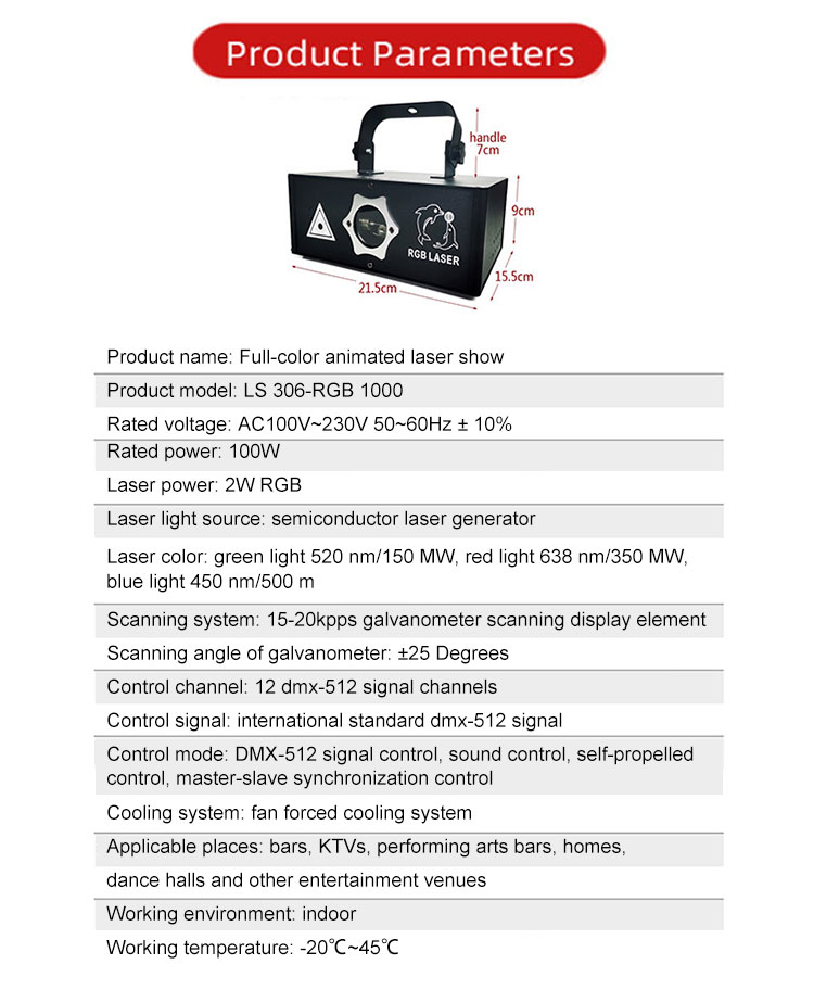 Single-Head 100w RGB Full Color Laser Stage Light, Sound Activated & DMX Control with 51 Patterns, High-Precision Scanning for Bars, Clubs, Parties, and Events