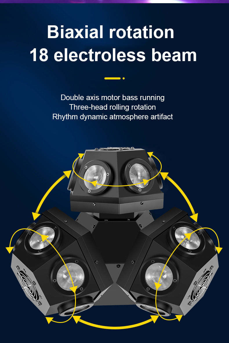 150W Triple Arm Moving Head Light with 18x10W LEDs 13/21 Channels DMX512 Sound Activated Master Slave Modes AC100-220V