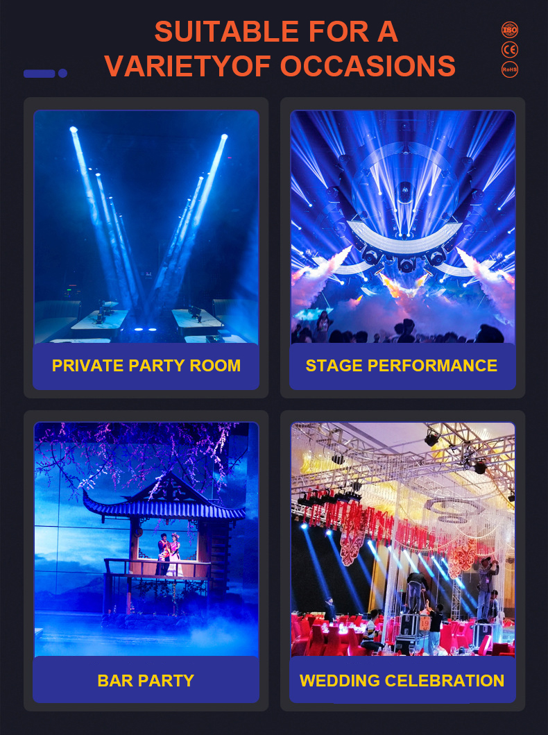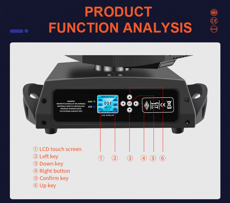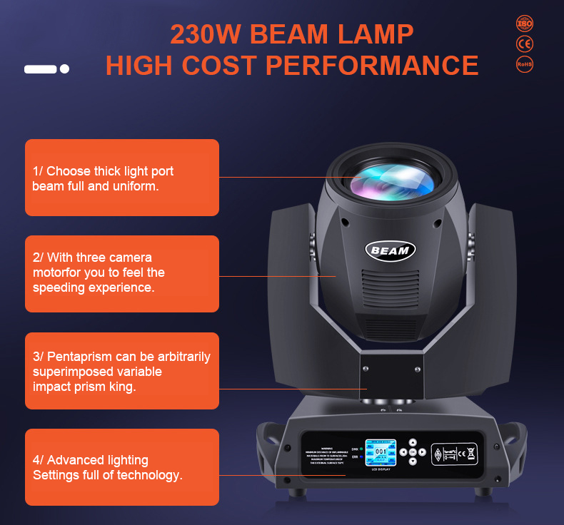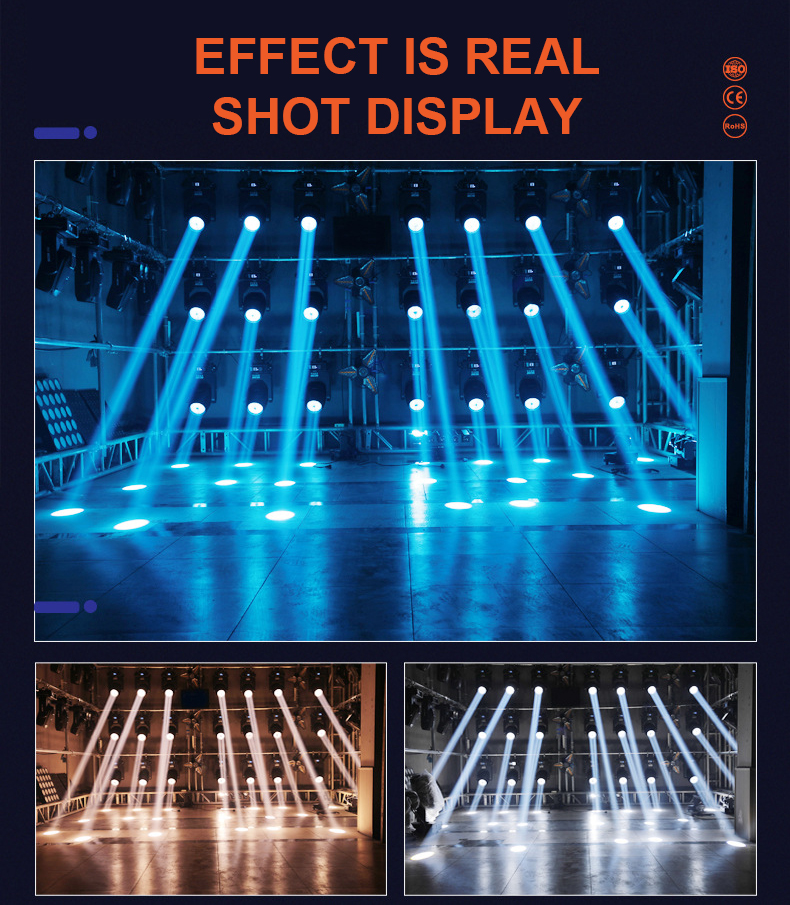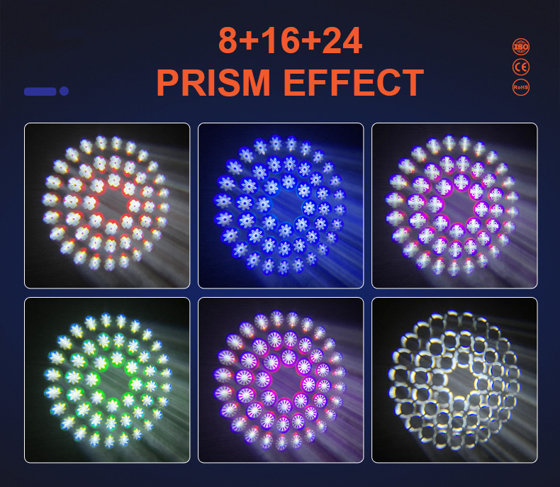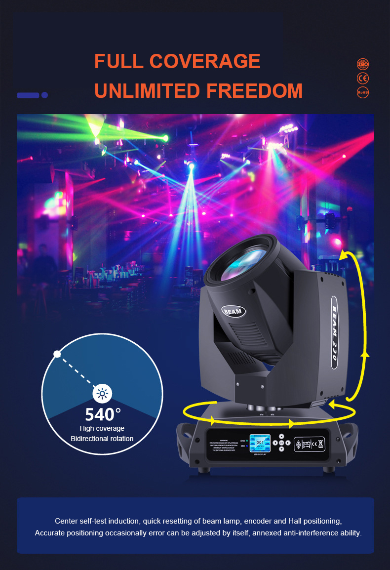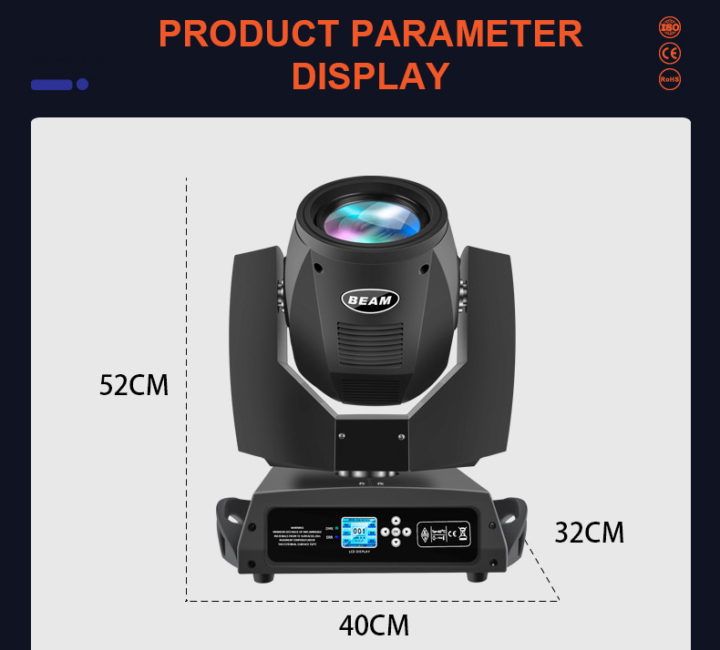 370W Moving Head Light with Osram 7R Lamp 14 Colors 18 Static Patterns 8/16/24 Prism Effects DMX512 8000K Color Temperature 0-100% Linear Dimming Black Aluminum PMMA