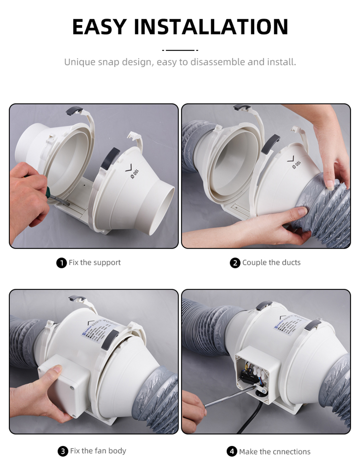 4-Inch Round Plastic Inline Tube Fan HF-100, 35 Watt Power 2-Speed (White)