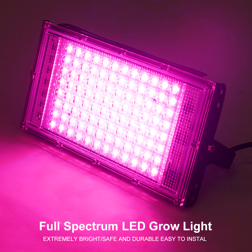 50W LED Flood Light with 1.5m Plug in Cable and Power Switch Full Spectrum Grow Light for Indoor Plants Waterproof Plant Growing Lamp Suitable for Seedling Flowering and Vegetative Growth