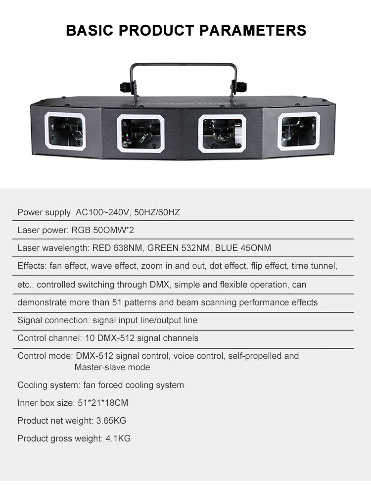 Fan Shaped DJ Laser Party Light 51 Patterns DMX512 Controlled Projector with Fan Wave Zoom Dot Flip and Tunnel Effects for Clubs Bars and Events