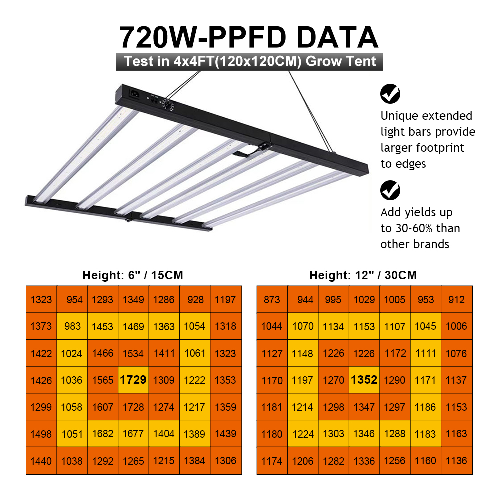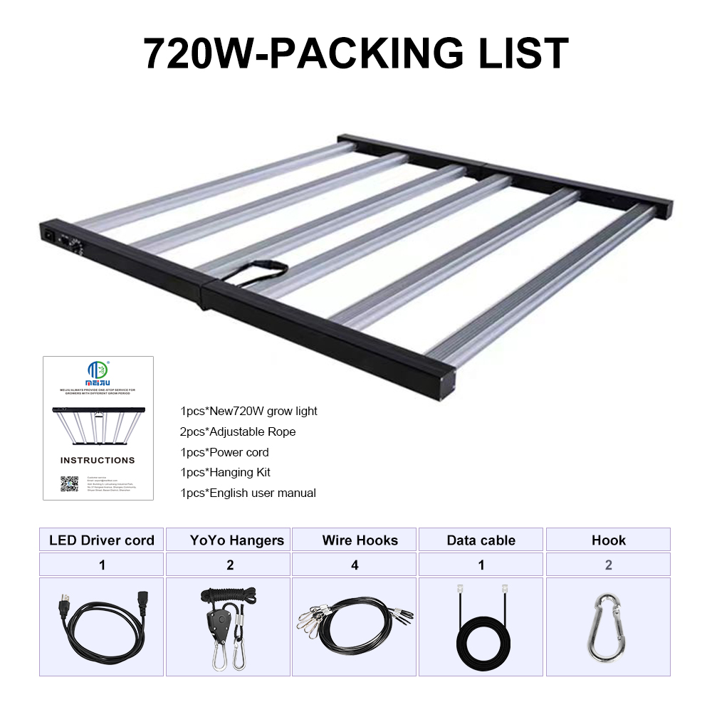MEIJIU Cost Effective Hydroponic Indoor Grow Efficiency 2.2 720W Led Grow Light For Grow Tent and Commercial Growing