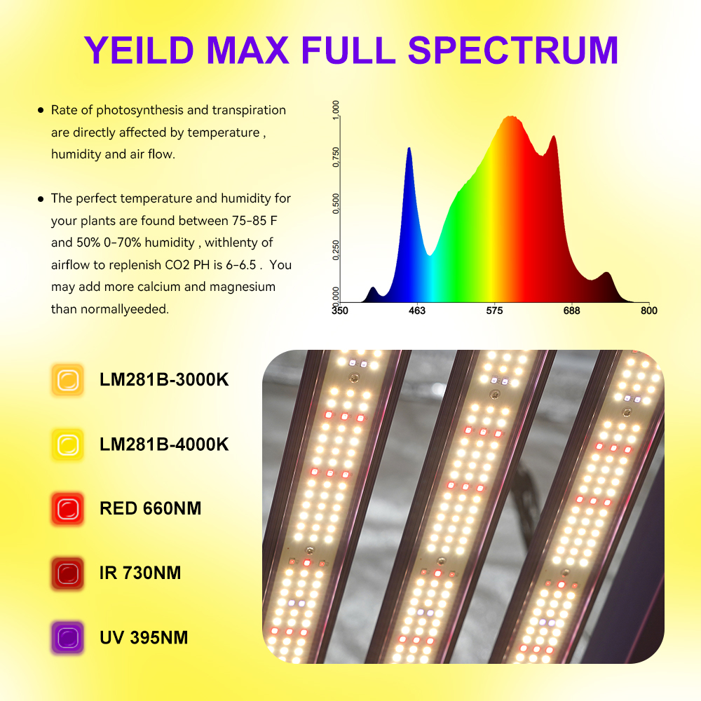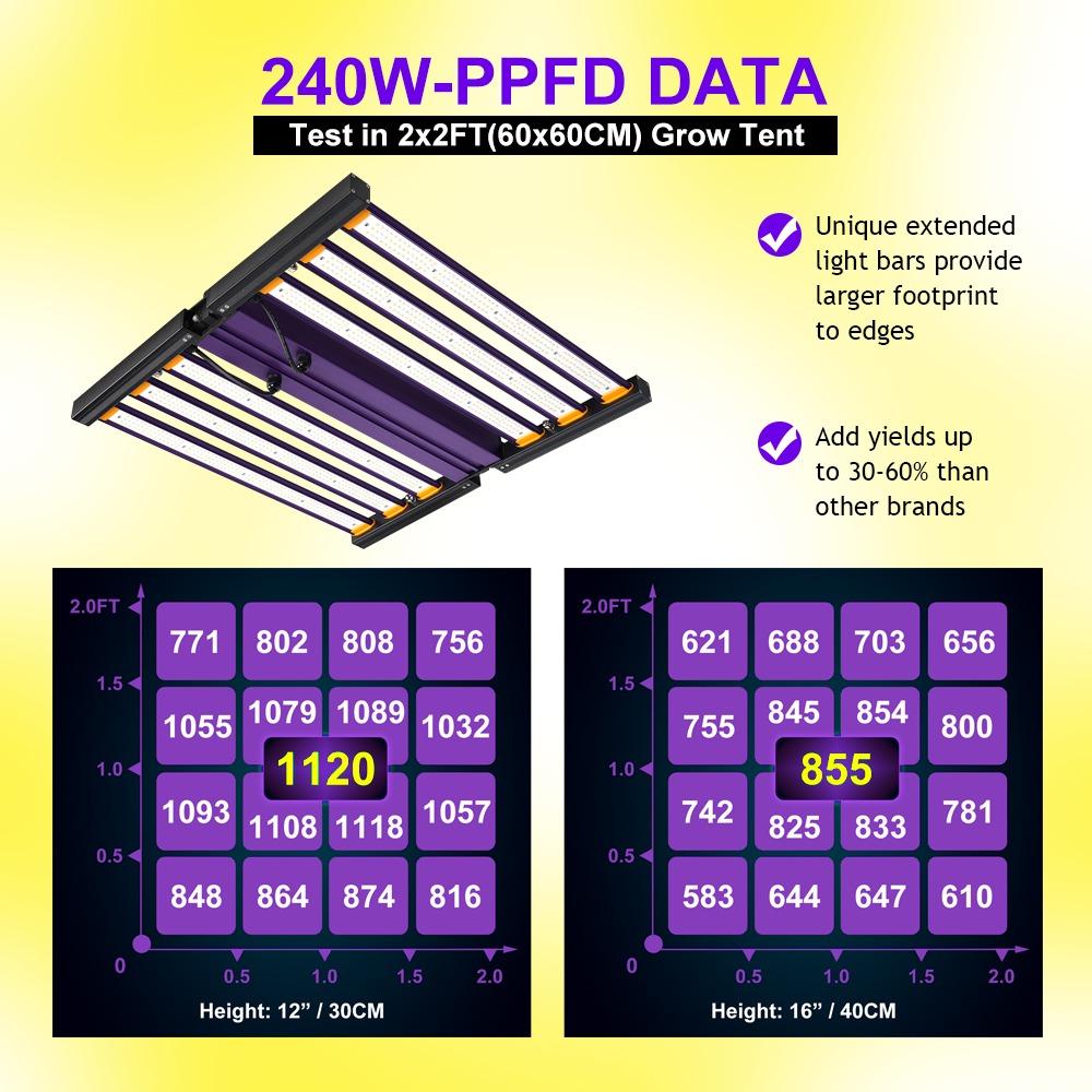 - Efficacy up to 2.3 µmol/s/J- PPF output 710µmol/s- Unique and innovative large foldable frame designed for wider rectangular coverage- Outstanding light spread and distribution in 80x80/90x90cm grow area- Highly Pre-assembly- New Clear Glue protection cover technology on LED bars