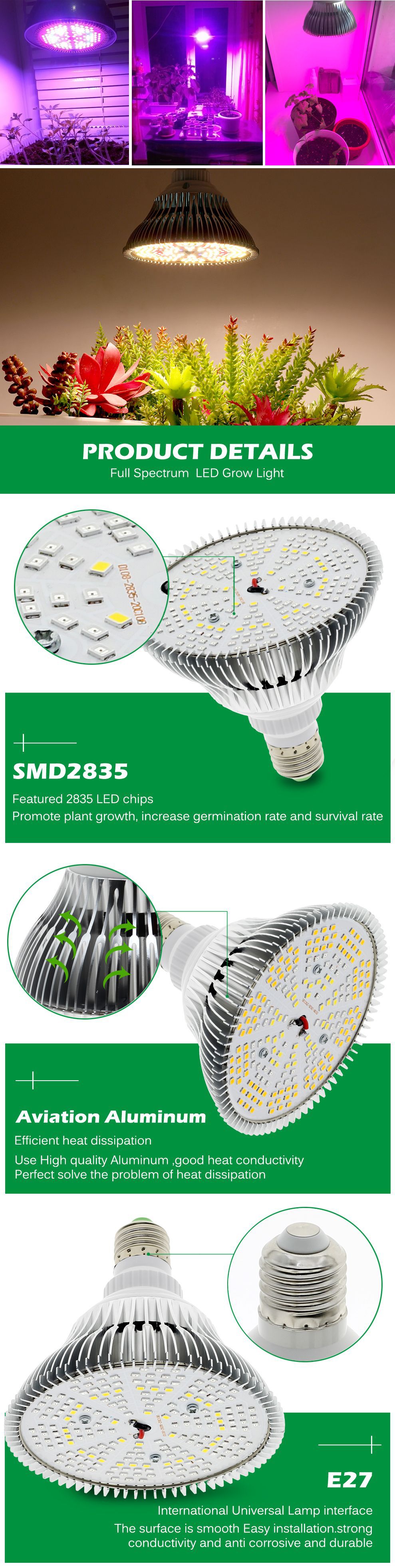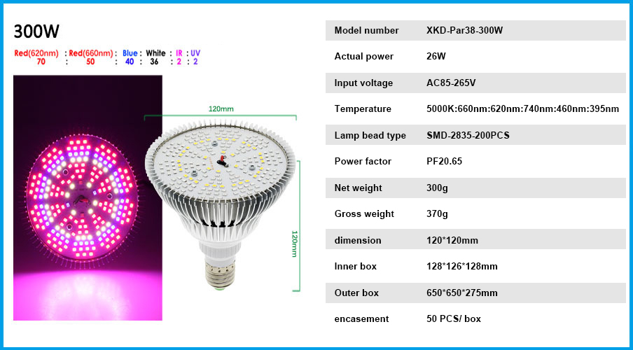 PAR38 26W LED Grow Light Bulb Full Spectrum Sunlight E27 Base All Waveband Plant Grow Light for Indoor Plants Full Spectrum Supplemental Lighting