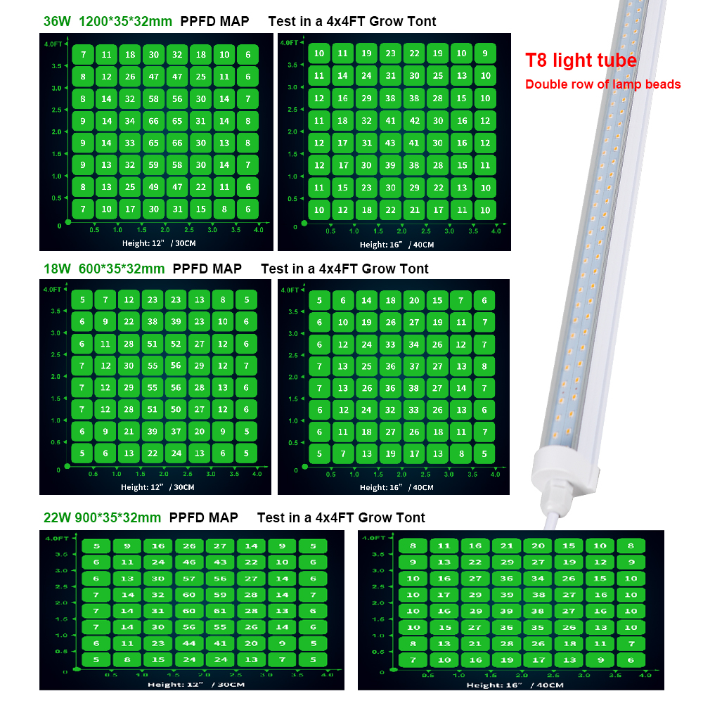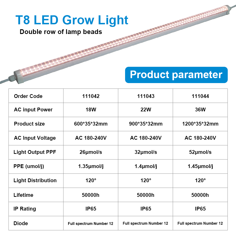 T8 Waterproof Tube Double Row Lamp Beads 36W Full Spectrum