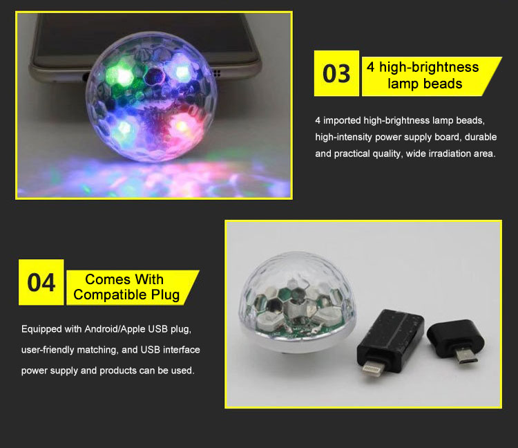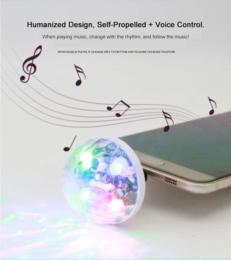 USB Mini Disco Ball Party Lights Sound Activated DJ Stage Strobe Lights Portable Led Car Atmosphere Lights for Xmas Stocking Stuffers, Parties, Karaoke, Bar